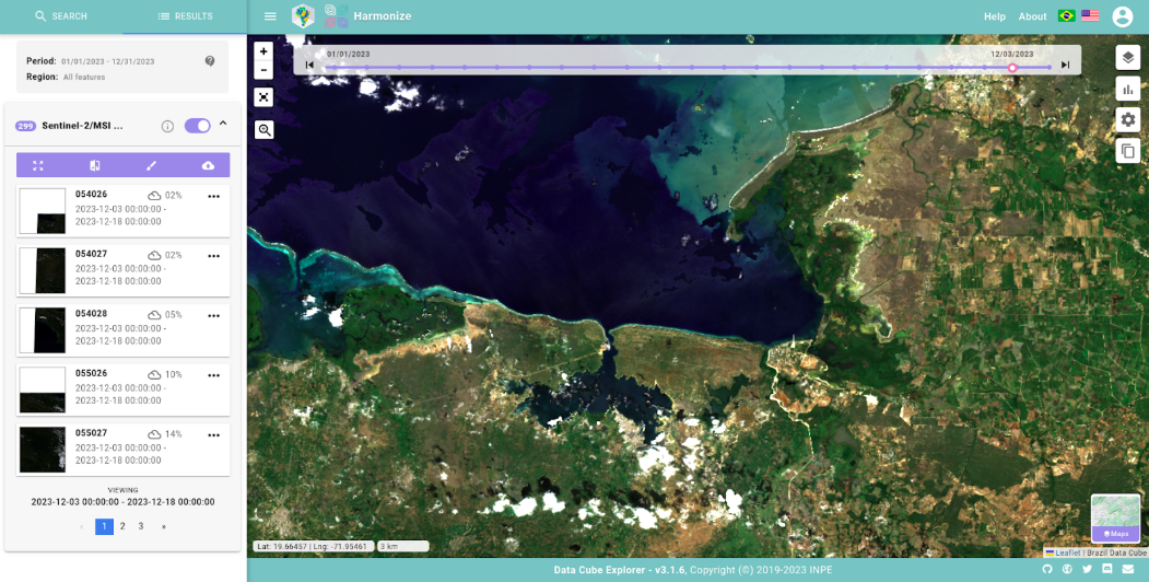 As part of the HARMONIZE Project’s requirements, image data cubes were generated for all participating coutries and made available through the Brazil Data Cube (BDC) and HARMONIZE Explorer portals.The cubes cover the period from January 01 to December 31, 2023. The catalog of non-Brazilian image data cubes available in the BDC and HARMONIZE Explorer is shown in Table below.